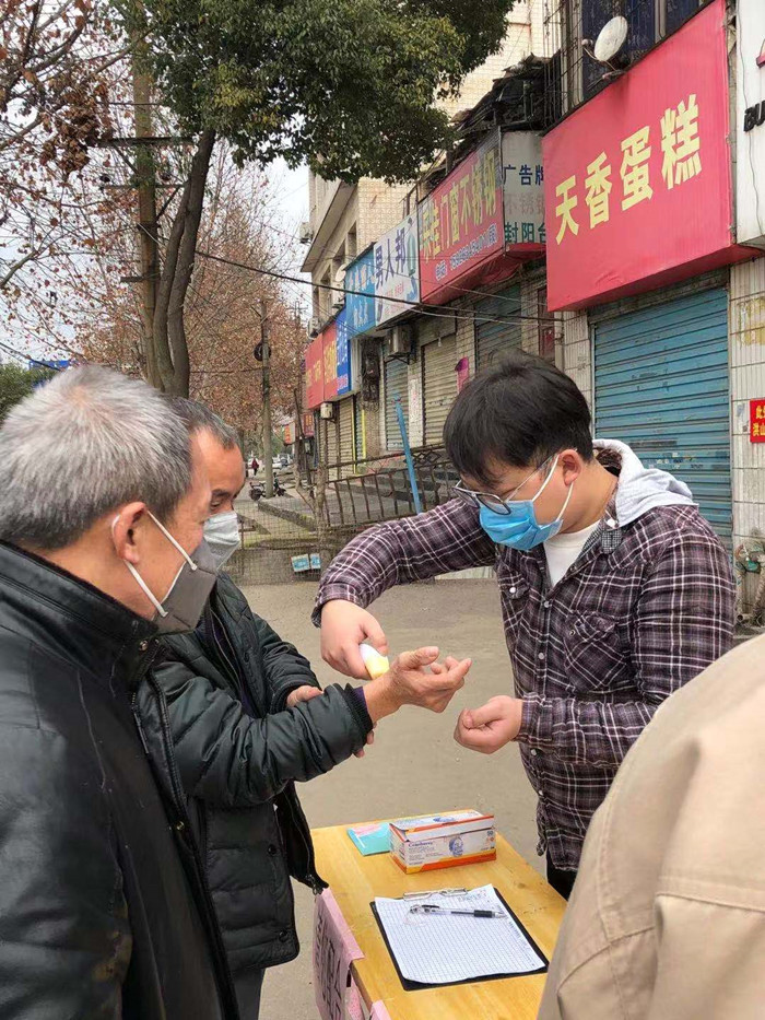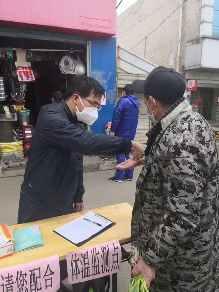 2月13日,集團第四黨支部李向群、甘偉龍兩位突擊隊員來到集團對口幫扶社區青山區廠前街道鐵鋪嶺社區現場,協助社區網格員做好宣傳、測溫、排查、登記、愛心口罩分發、環境衛生消殺等工作。一張桌子、一份人員登記表、一把紅外測溫槍就是他們倆工作的全部裝備,是兩名突擊隊員堅守一天的陣地。近9個小時的值守,兩人連午飯都顧不上吃,簡單的幾口干糧就著白水,在執勤站點的路邊風餐陋食的囫圇解決。