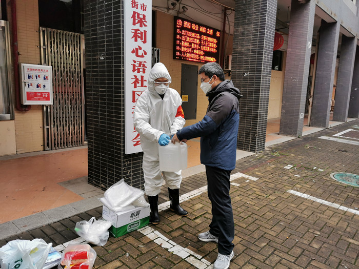為保證下沉人員的健康安全,和縱盛地產公司想方設法籌集防護物資,共籌集口罩3000個,防護服30套,橡膠手套2000雙,護目鏡50個,酒精、消毒液各10桶。在公司總經理尹水章的帶領下,先后到保利心語、金色港灣兩個社區贈送防護物資并慰問一線干部職工,要求下沉同志要服從社區安排,迎難而上,用實際行動展現交投人的責任和擔當。同時囑托地產公司綜合部羅坤持續關注每位下沉社區工作同志的防護情況,不分晝夜的將防護物資逐一送給下沉職工。