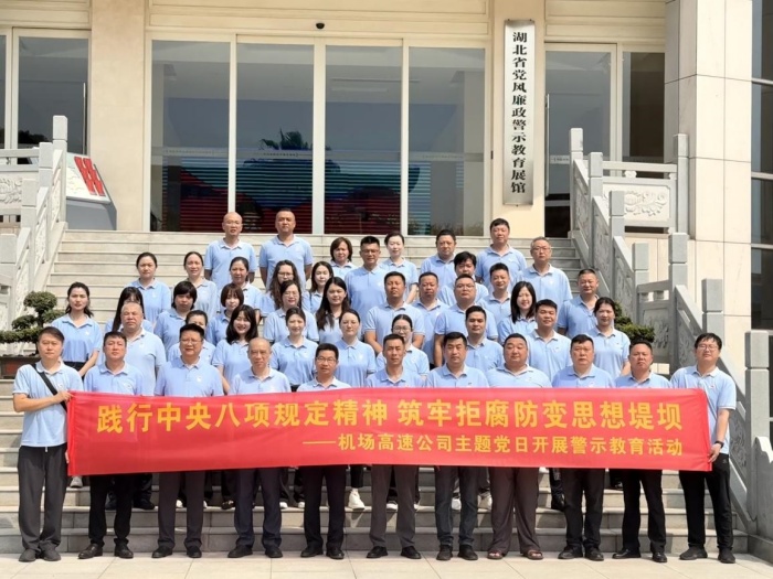 在紀(jì)念中國人民抗日戰(zhàn)爭勝利暨世界反法西斯戰(zhàn)爭勝利80周年之際,為進(jìn)一步深入踐行中央八項(xiàng)規(guī)定精神學(xué)習(xí)教育,持續(xù)深化黨風(fēng)廉政建設(shè),認(rèn)真落實(shí)公司“干部素質(zhì)提升年”要求,9月4日,機(jī)場(chǎng)高速公司50余名黨員干部前往湖北省黨風(fēng)廉政警示教育基地開展“踐行中央八項(xiàng)規(guī)定精神 筑牢拒腐防變思想堤壩”主題黨日活動(dòng)。