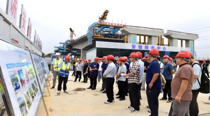 為積極推動(dòng)智能建造技術(shù)在交通基礎(chǔ)設(shè)施領(lǐng)域的深度融合與應(yīng)用,引領(lǐng)橋梁工程建設(shè)向數(shù)字化、智能化轉(zhuǎn)型升級(jí),近日,“2025橋梁智能建造技術(shù)交流暨武漢北六環(huán)項(xiàng)目現(xiàn)場(chǎng)觀摩會(huì)”在武漢成功舉辦。來(lái)自行業(yè)學(xué)會(huì)、主管部門、高校科研院所、施工及監(jiān)理單位的150余名專家學(xué)者齊聚一堂,圍繞智能建造技術(shù)的前沿進(jìn)展展開深入交流,并實(shí)地觀摩了由中建三局投資建設(shè)的武漢都市圈環(huán)線北段灄水河特大橋與預(yù)制梁智能工廠施工現(xiàn)場(chǎng),重點(diǎn)探討了自平衡懸臂筑橋機(jī)、預(yù)制梁鋼筋骨架智能生產(chǎn)線等創(chuàng)新技術(shù)的實(shí)踐成果。