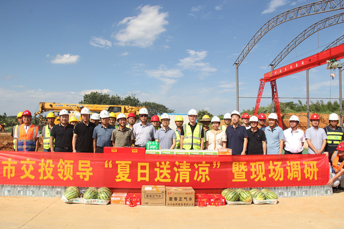 7月4日上午,武漢交投集團總經(jīng)理劉正濤、城發(fā)集團副總工程師、交投集團總工程師肖銘釗一行赴通修高速項目調(diào)研,通過實地考察、聽取項目匯報形式,詳細了解項目推進情況、難點痛點,并開展夏送清涼慰問活動。