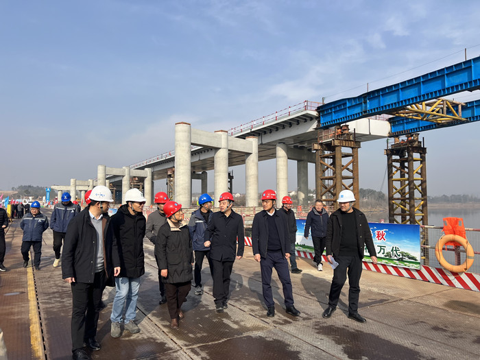 汪凡非一行深入北六環項目第四合同段倒水河大橋施工現場,聽取了項目建設單位武漢交投集團北六環項目公司和施工單位負責人關于項目進展情況的匯報,實地查看了建設項目安全生產工作開展情況。