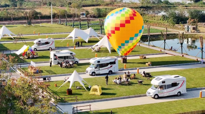 山羊、白鵝等小動物的入駐更添鄉村野趣,大小旅客可近距離互動喂養,未來通過生態循環模式,畜禽糞便將轉化為有機肥料反哺菜園,實現生態與人文的有機統一。更值得關注的是,服務區精心打造的6塊專業房車營地已投入使用,配套充電樁、戶外用品租賃區等設施,定期舉辦湖畔音樂會、星空電影夜等主題活動,讓這里成為武漢市民周末“微度假”的首選地。