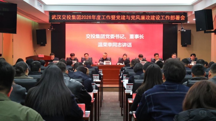 2月28日上午,武漢交投集團召開2026年度工作暨黨建與黨風(fēng)廉政建設(shè)工作部署會。會議既是春節(jié)后的收心會、動員會,更是為“十五五”開好局、起好步的誓師會,旨在深入貫徹落實二十屆中央紀(jì)委五次全會、省紀(jì)委五次全會及市紀(jì)委六次全會精神,明確堅持一手抓經(jīng)濟發(fā)展、一手抓黨風(fēng)廉政和反腐敗工作,以兩手抓、兩手硬的舉措,全力打開“十五五”發(fā)展新局面。