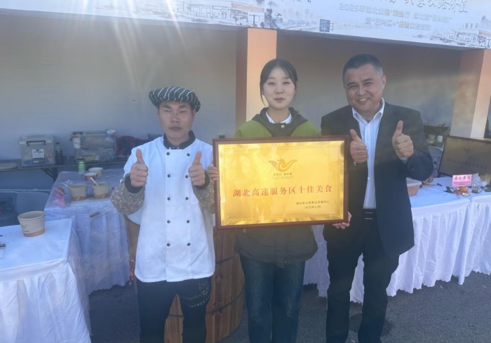 姚家集服務區立足地域特色,與本地合作社建立農產品直采機制,聯合餐飲企業將黃陂麥醬標準化開發,推出爆款菜品麥醬燒肉;同步引入黃陂豆絲、洪湖藕粉、精武鴨脖等荊楚特色物產,讓鄉土好物搭上高速快車銷往全國。2025年,麥醬燒肉成功獲評“湖北高速服務區十佳美食”,一塊特色燒肉,帶動一個鄉土產業,富裕一方鄉村百姓。